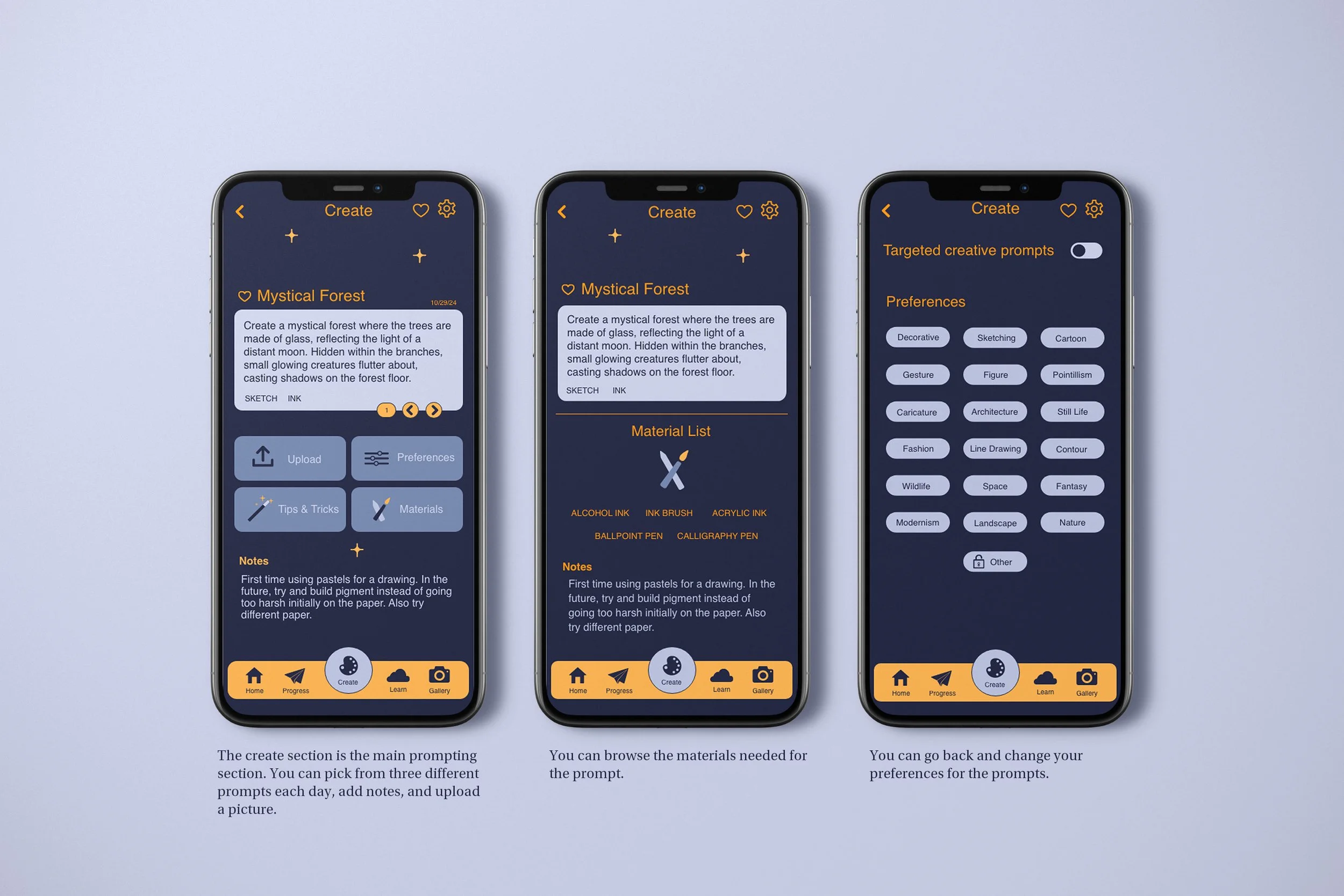 Ignite is a daily creative prompting app that inspires artists while avoiding clichés like obvious art tools or overly bright visuals. The brand needed to feel subtle, motivational, and approachable, sparking creativity without overwhelming users.