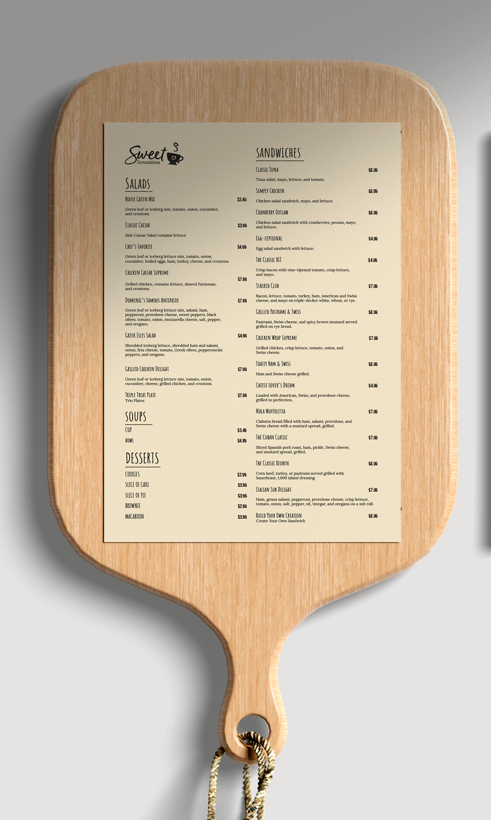 Sweet Sensations is a beloved mom-and-pop bakery and sandwich shop. When rebranding it the goal was to preserve its cozy, hometown charm. The challenge was to modernize the brand without losing the warmth, friendliness, and handmade feeling that longtime customers love.