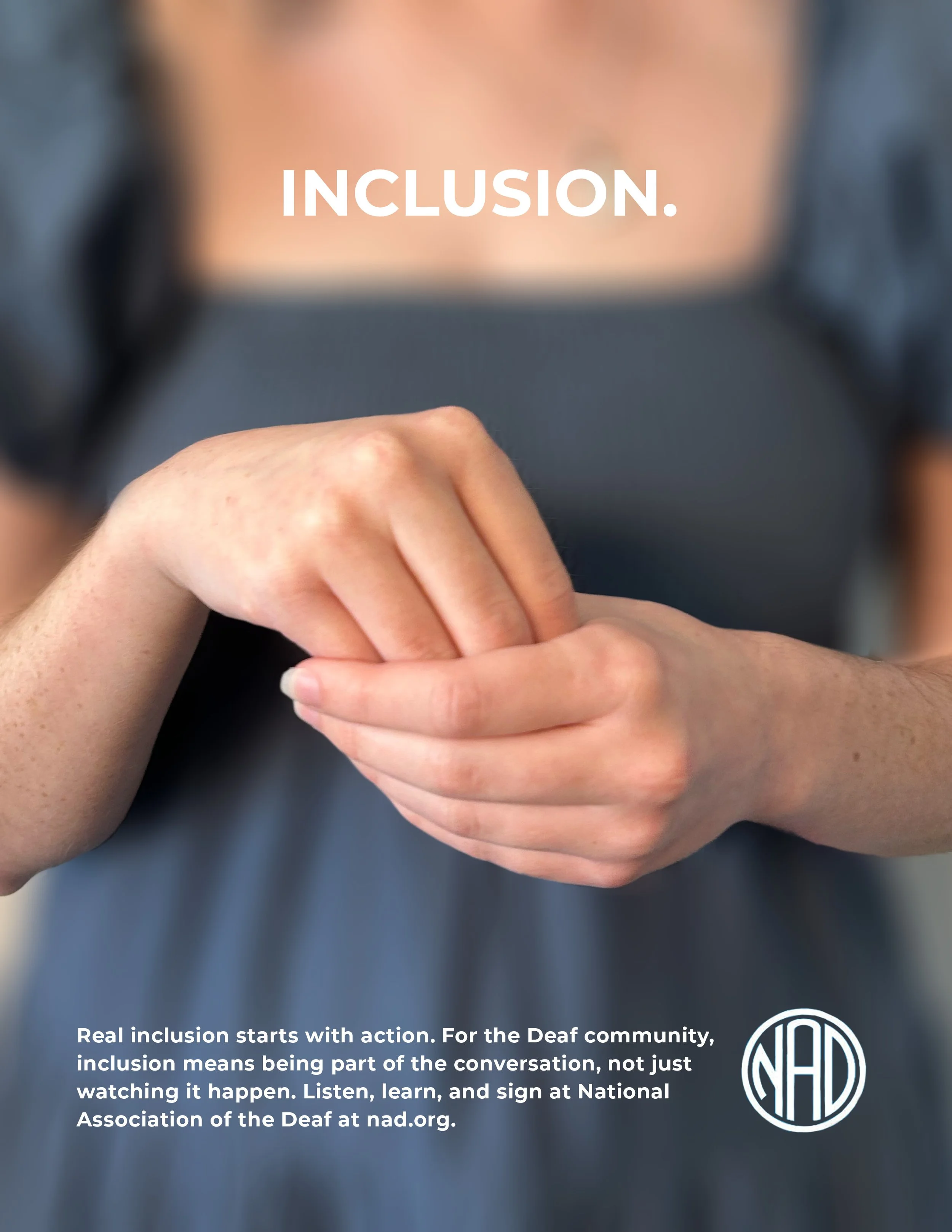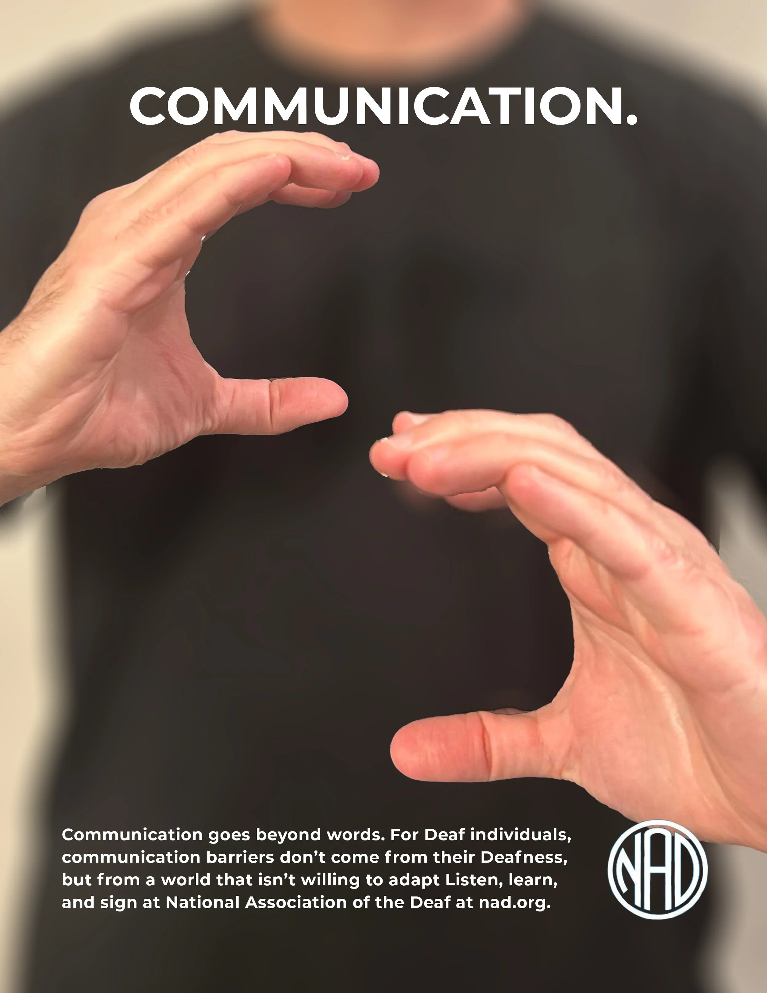 This silent, visual campaign centers on three powerful concepts: inclusion, communication, and connection. Each ad features close-up hands signing a single word—capturing the beauty of American Sign Language and the message that not all voices sound the same, but every voice matters.